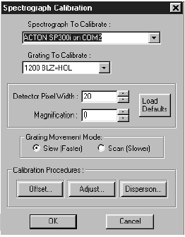 Offset ダイアログボックスをOKボタンをおして閉じて、Spectrograph Calibrateダイアログボックスに戻ってください。