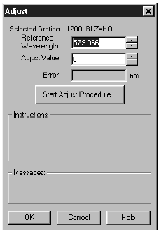 水銀の579.066nmのように、測定する機知のリファレンス波長を入力してください。次に、Start Adjust Procedureをクリックして下さい。.