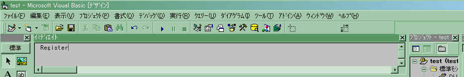 最後に"表示(V")メニューの"イミディエイトウィンドウ"をクリックし、現れたイミィデエイトウィンドウ上で、"Register"とタイプし、Enterを押します。